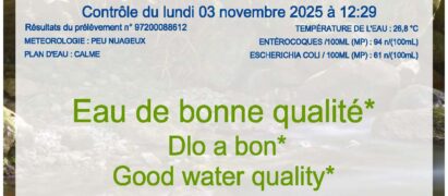 L’ARS Martinique informe que la qualité de l’eau de baignade à Cœur Bouliki est actuellement bonne selon le contrôle du lundi 3...