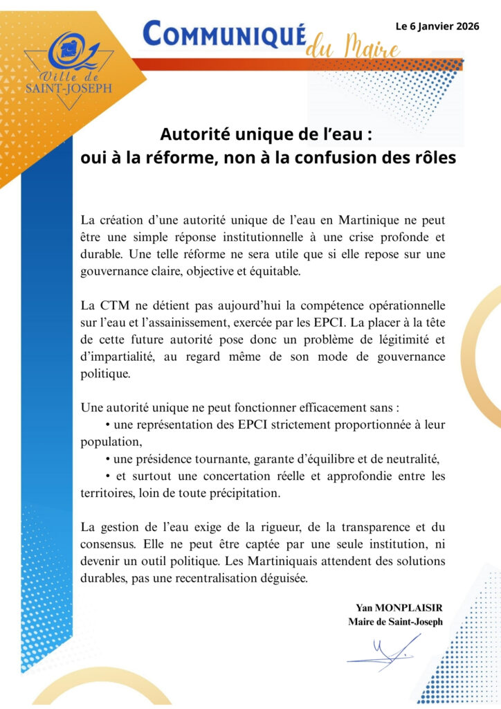 La gestion de l’eau doit reposer sur une gouvernance claire, équitable et concertée, au service de tous les territoires et des Martiniquais.