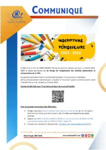 COMMUNIQUÉ INSCRIPTION PERISCOLAIRE 2023-2024