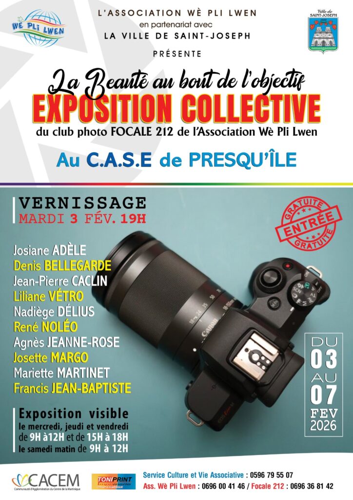 L’Association Wè Pli Lwen, en partenariat avec la Ville de Saint‑Joseph, invite le public à découvrir l’exposition collective “La Beauté au bout de l’objectif”, présentée par le club photo Focale 212. L’événement se tiendra au C.A.S.E de Presqu’île, du 3 au 7 février 2026, avec une entrée entièrement gratuite.
