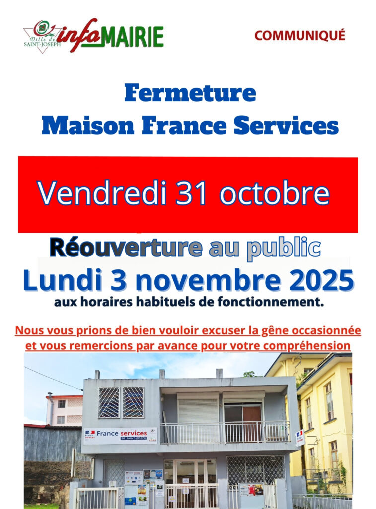 La Maison France Services sera fermée le vendredi 31 octobre.