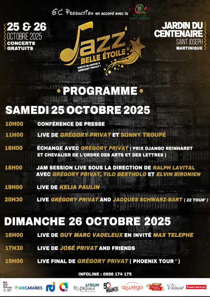 Les 25 et 26 octobre 2025, le Jardin du Centenaire vibrera au rythme du jazz pour une nouvelle édition de Jazz Belle Étoile, un événement musical organisé par GC Production, en partenariat avec la Ville de Saint-Joseph.