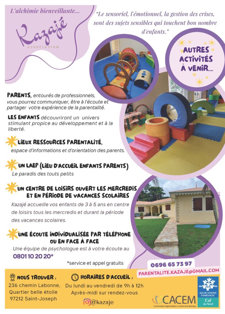 Renseignements au 0696 65 73 97 ou par mail à l’adresse suivante : parentalite.kazaje@gmail.com