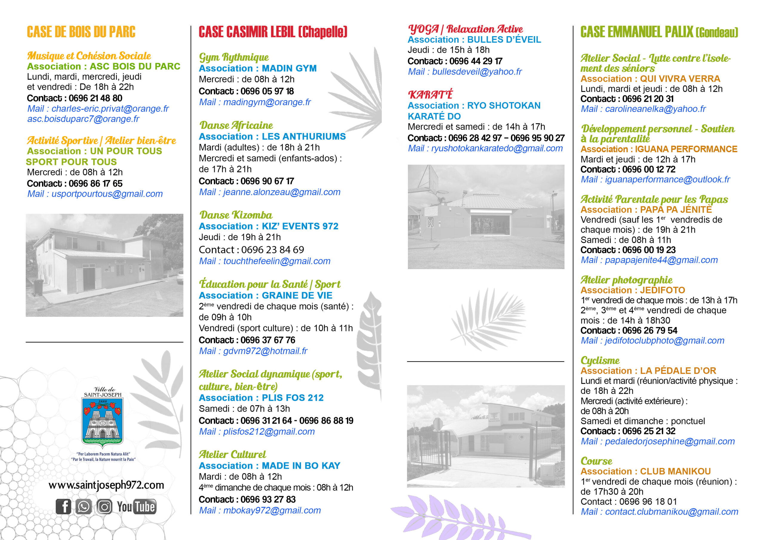 Les CASES (Centres d’Animation Socio‑Éducatifs) de la Ville de Saint‑Joseph sont des lieux de rencontres, d’animations culturelles, sportives et éducatives. Ils accueillent enfants, adolescents, familles, seniors et associations, avec l’objectif de :