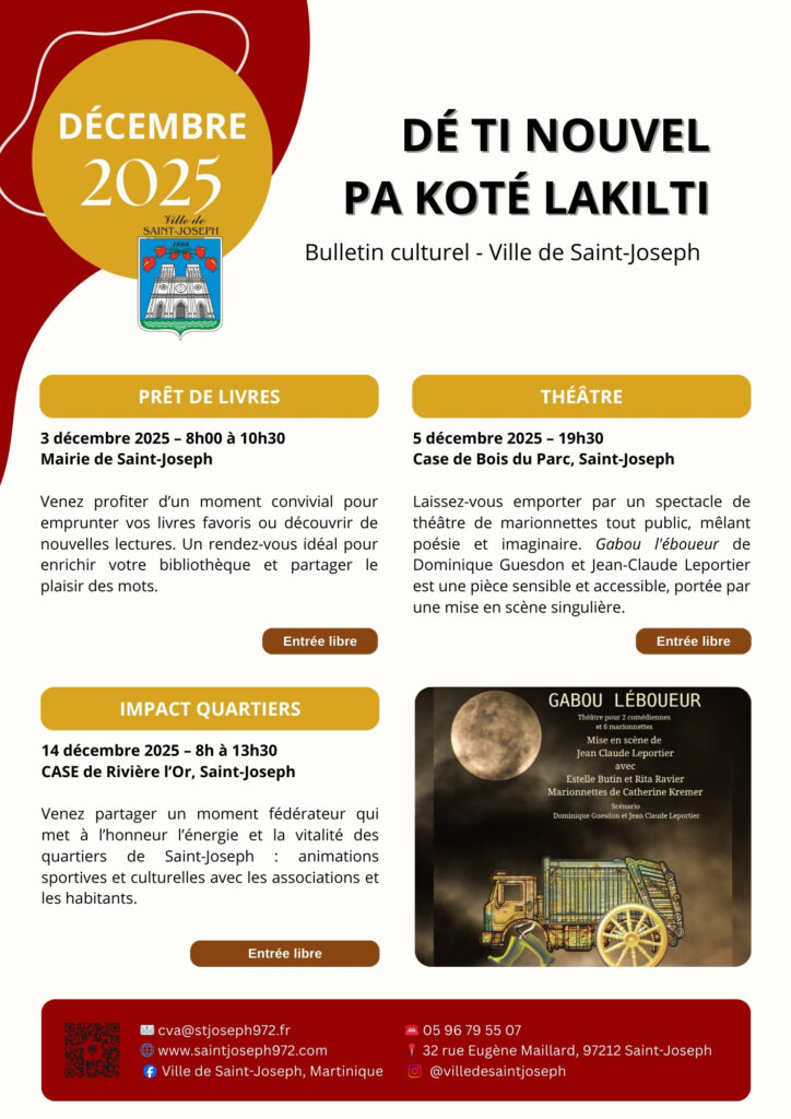 La Ville de Saint-Joseph à le plaisir de vous présenter la Newsletter Culture “Dé ti nouvel pa koté LAKILTI” pour le mois de décembre 2025.