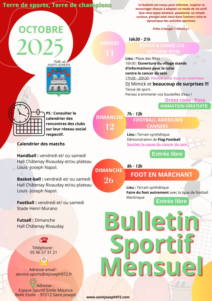 La Ville de Saint-Joseph à le plaisir de vous présenter le Bulletin sportif Mensuel du mois d’octobre 2025.