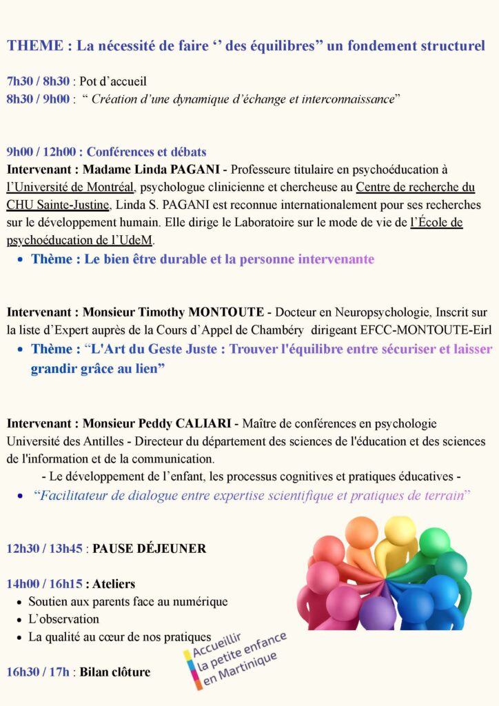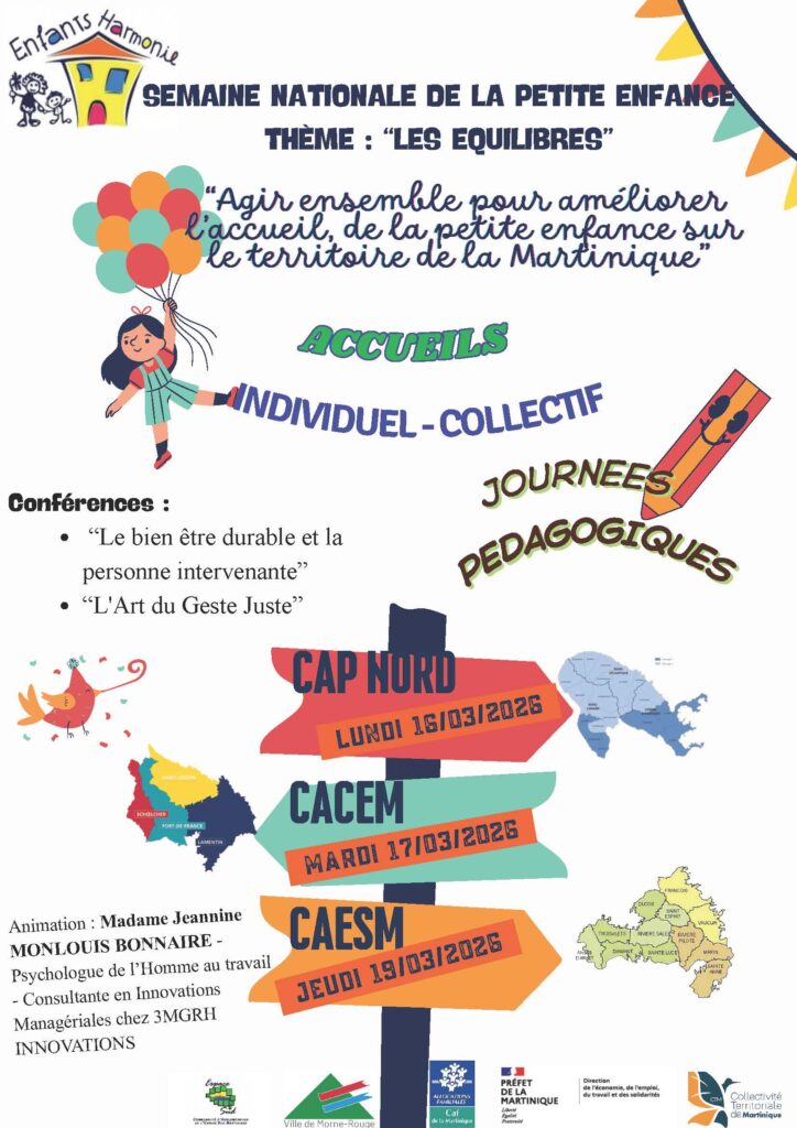 Dans le cadre de la Semaine Nationale de la Petite Enfance, la Martinique organise trois journées pédagogiques exceptionnelles autour du thème “Les Équilibres”, afin de renforcer la qualité de l’accueil individuel et collectif du jeune enfant sur le territoire.