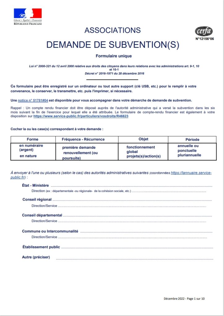 Vous aurez la possibilité de faire votre demande de subvention en ligne aux services de la Mairie.